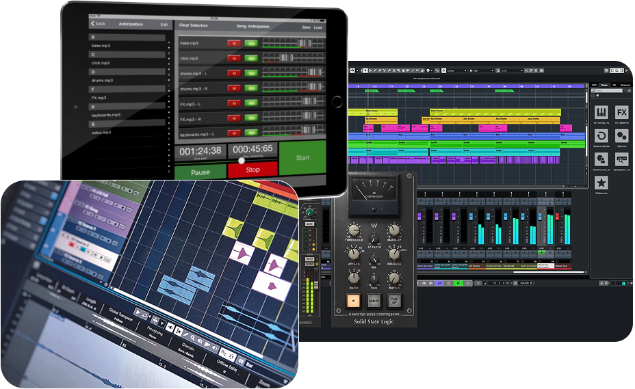 Wij beschikken over hoogwaardige studio apparatuur, DAW software en plugins om uw orkestbanden te laten klinken als het origineel, of indien gewenst deze aan te passen aan uw gevraagde specifieke stagesound.